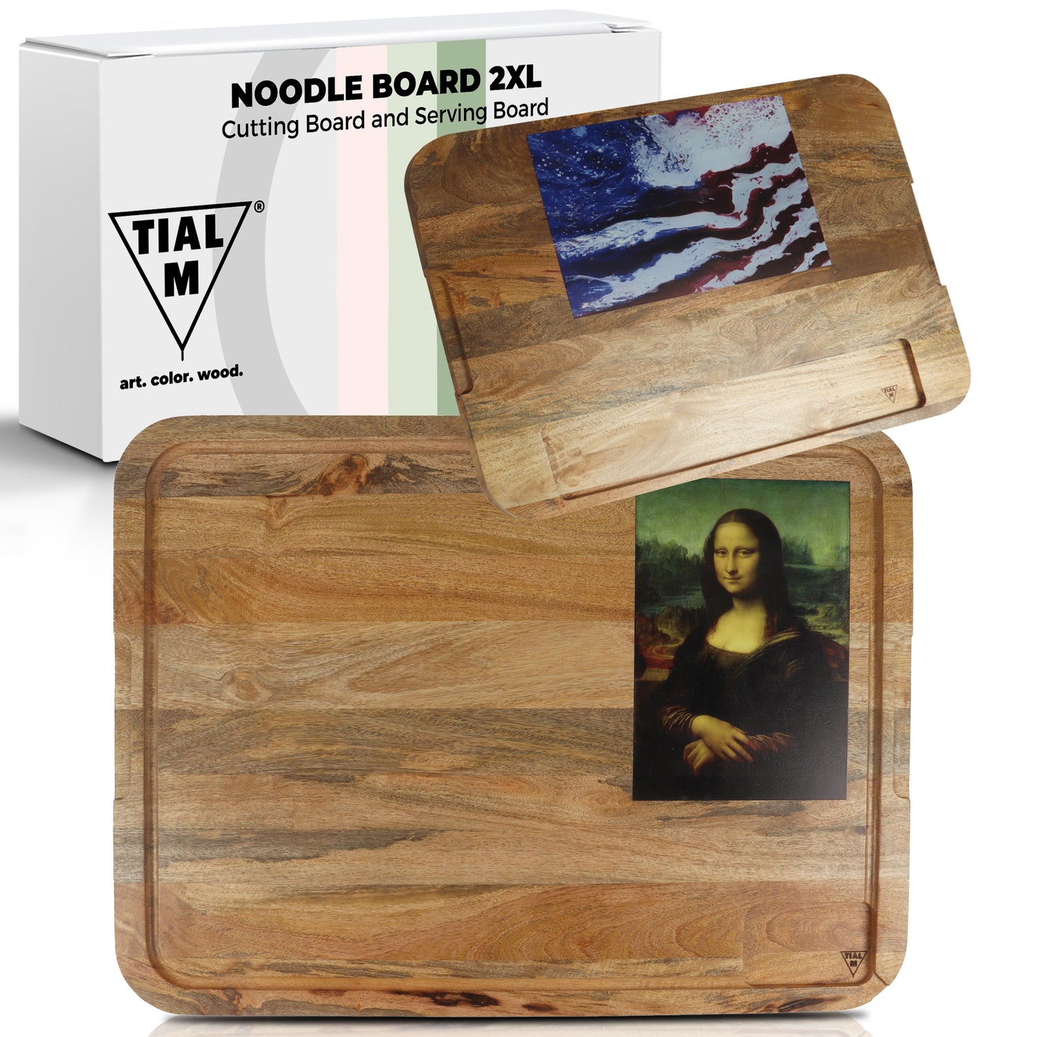 Crafted for the discerning homemaker, our noodle board features a high-quality print of Leonardo da Vinci's Mona Lisa on the cutting side, bringing timeless art into your kitchen