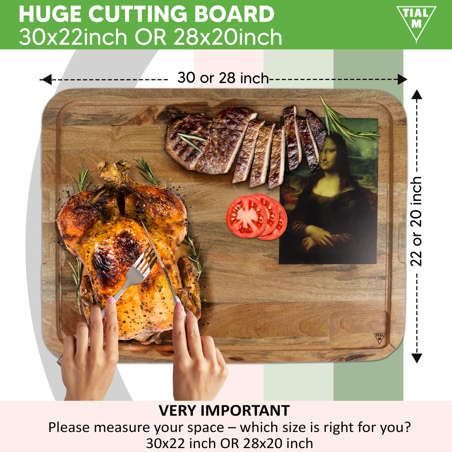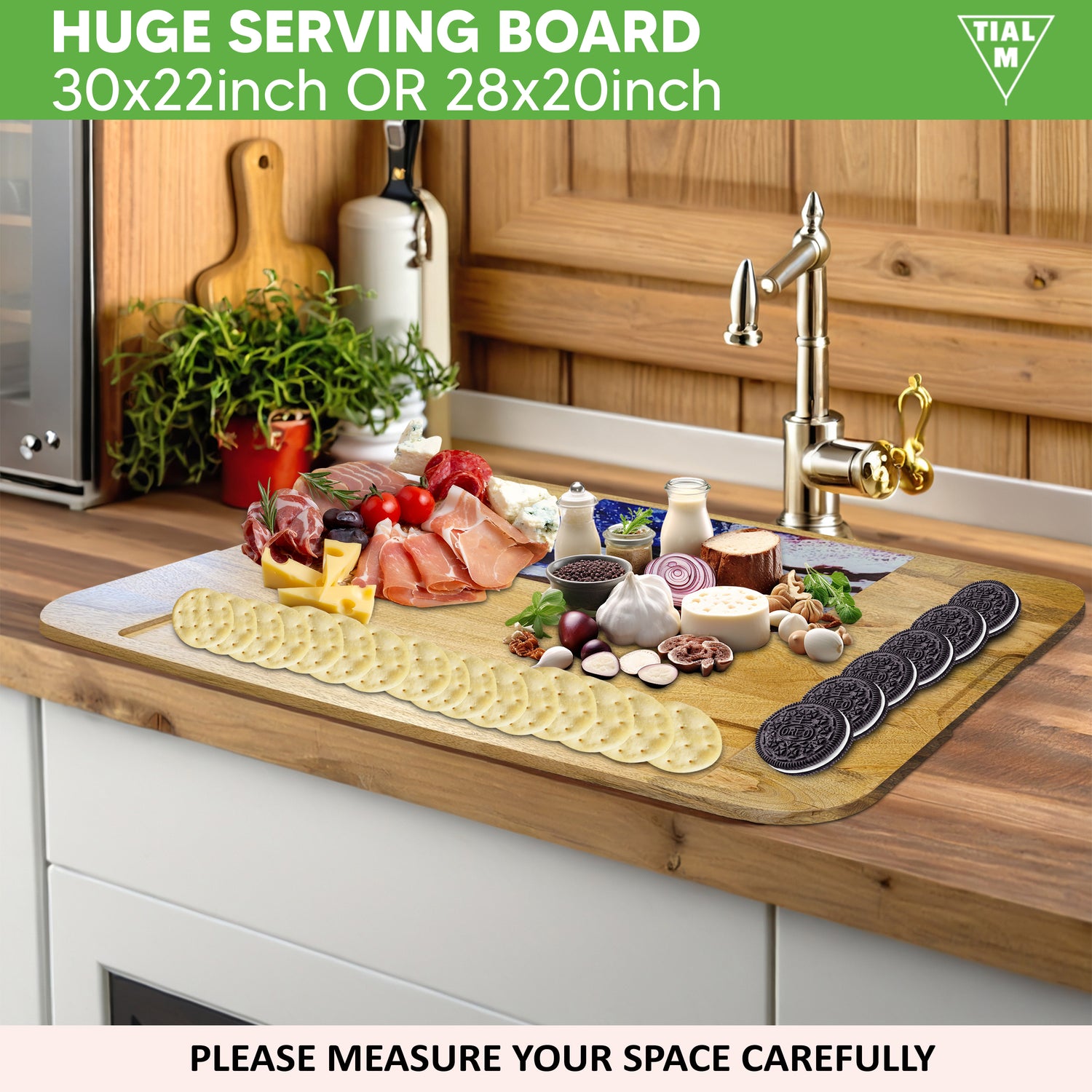 This is a HUGE cutting board, serving tray, and even a decorative splashback. There are two sizes -30x22 and 28x20 inch. Display and discuss