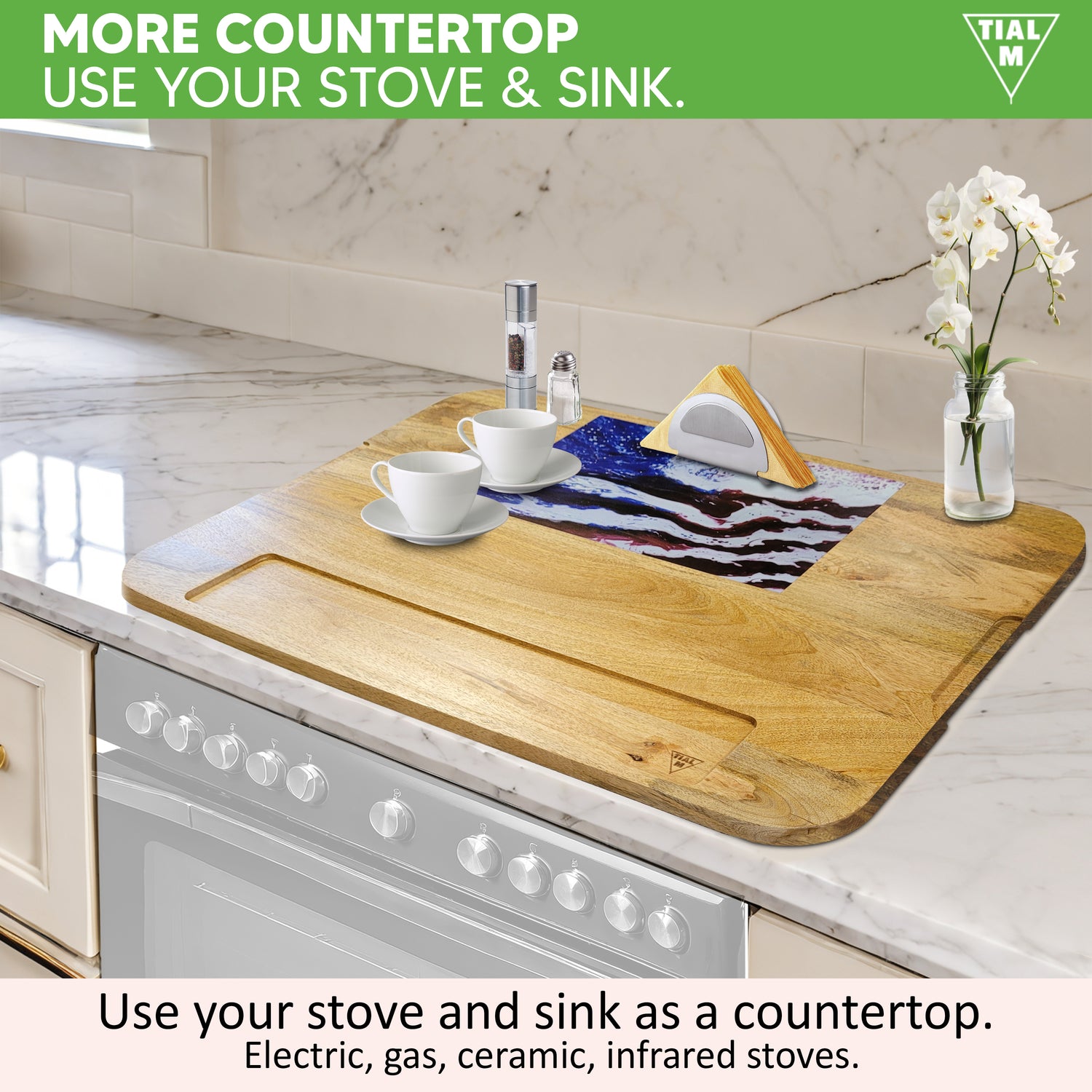 Cover your stove/sink. Create more countertop space in the kitchen of your apartment, house, RV, motorhome, or camper. Reduce the amount of cleaning too